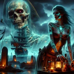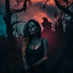 «bioluminescent art combined with horrorcore conjuring of a macab...»