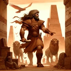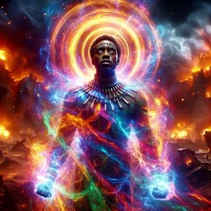 «In front of a tempestuous environment, a bold warrior emerges. E...»