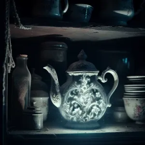 «"In the dim-lit corners of an old, abandoned kitchen, an unassum...»