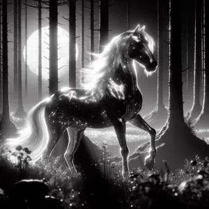 «In the depths of a misty forest, a singular lustrous centaur eme...»