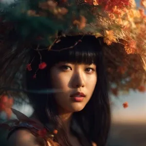 «A beaming Japanese woman, 18 years old. front portrait color pho...»