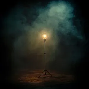 «A ghost light on an empty stage. It is a singular lightbulb on t...»