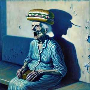«grainy, blurry, simplified, angular, harsh, absurd, modernist pa...»