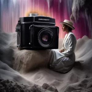 «Capture a high-key photograph of a plush retrograde nebula float...»