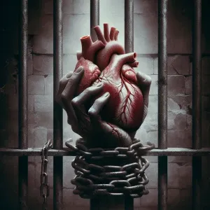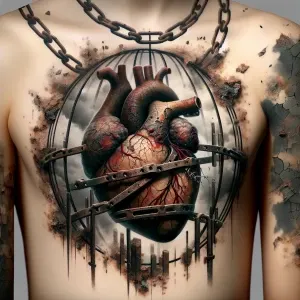 «a heart wrapped in chains ⛓️ and behind bars tattoo the skin aro...»