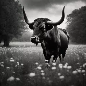 «Create an image of an ethereal minotaur with a bull's head and a...»