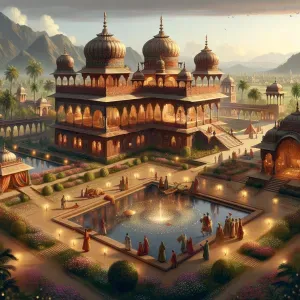 «an ultra-HD, bird's-eye view image of a grand palace belonging t...»