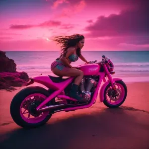 «Create an image of the character Moana riding a motorcycle with...»