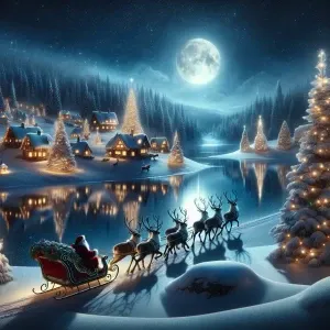 «Create an image of a magical winter scene featuring a quaint vil...»
