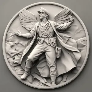 «Harley Davidson and rider, grayscale 3d bas relief, round border»