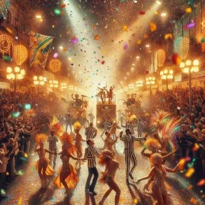 «Visualize a bustling city street in the midst of a vibrant festi...»