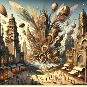 «Design a vibrant city where fairies and steampunk technology coe...»