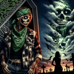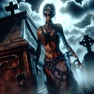 «diabolical zombie with a conjuring demon effect wearing dirty to...»