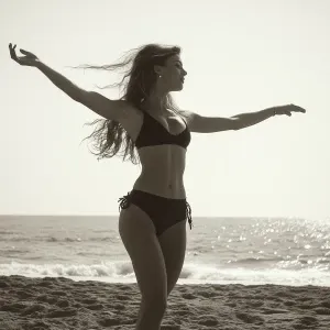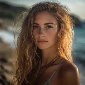 «Italian American female model, fit tall, supple, boxum, light br...»