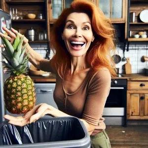 «Sarcastically Ginger haired woman Throwing just 1 pineapple in...»