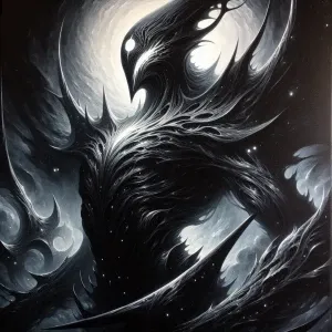 «A brooding, majestic Shadow Elemental looms large in the acrylic...»