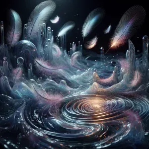 «Visualize a dreamlike scene where delicate feathers and gelatino...»