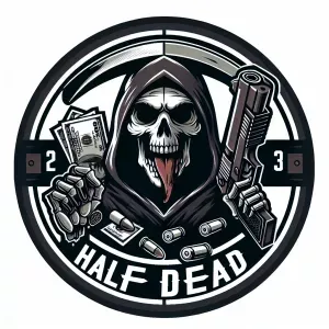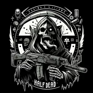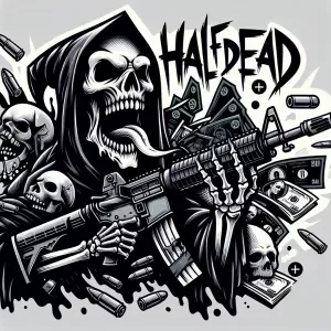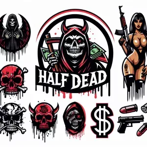 «1. Design a logo for 'HALF Dead' featuring a bold, thick, red fo...»