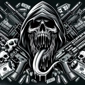 «Design a circular, edged logo showcasing a stylized Grim Reaper...»