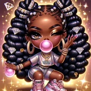 «Draw a front-facing chibi African American woman with waist-leng...»
