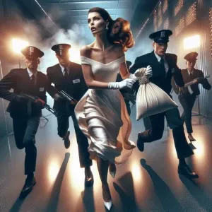 «A woman holding a bag of stolen goods in a white dress, like Mar...»