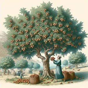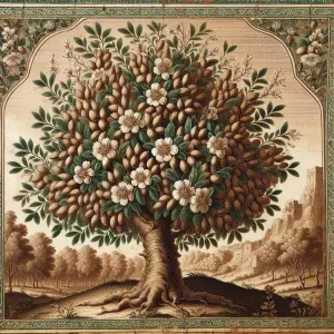 «7th century Middle East image of a beautiful almond tree. Someon...»