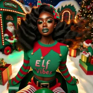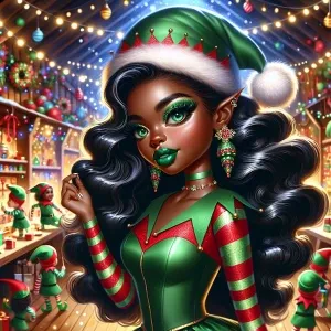 «African american caricature rich melanin elf teen with soft glam...»