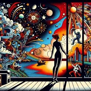 «Prompt: A slender, beautiful woman with flaming red hair looks o...»