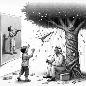 «A sketch-style image of a plain white background. An adult man s...»