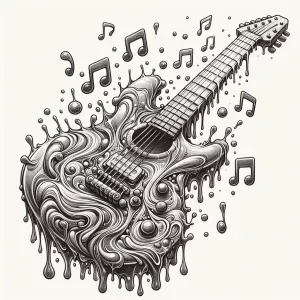 «A guitar made of liquid metal flowing the music notes dripping»