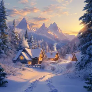 «Create an image of a magical winter landscape: a snow-covered vi...»