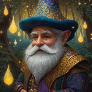 «A dazzling gnome with intricate golden patterns adorning his poi...»