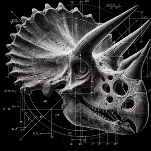 «Very high resolution HDRI b&w x-ray of a triceratops head with a...»