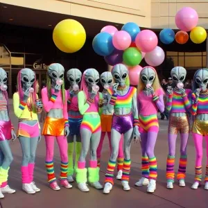 «Female valley girl 80s aliens blowing bubbles with bubble gum ou...»
