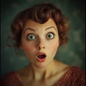 «A woman gazes into a mirror with an expression of surprise, only...»
