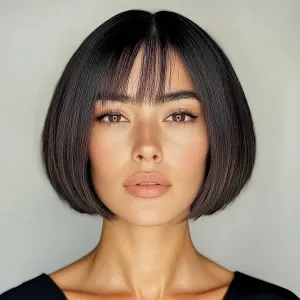 «a woman, look to the front, close up photo, Bob cut Hair, Straig...»