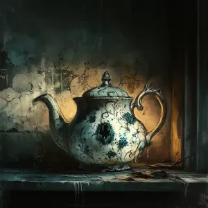 «"In the dim-lit corners of an old, abandoned kitchen, an unassum...»