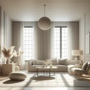 «Create a minimalist living room design with clean lines, neutral...»