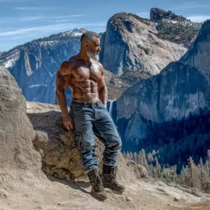 «Make a man with gray-black hair and beard bodybuilder big arms a...»