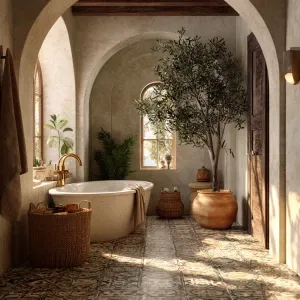 «Create a luxurious bathroom with design elements inspired by des...»