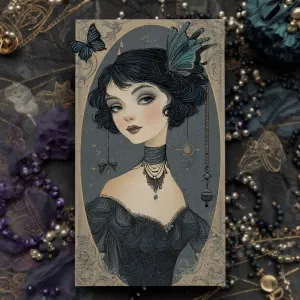 «Edwardian fae journal card — black butterflies, astrolabes, hang...»