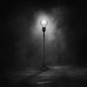 «A ghost light on an empty stage. It is a singular lightbulb on t...»