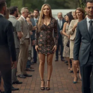 «Basic 40-year-old suburban housewife wearing a casual basic dres...»