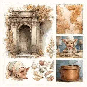 «Print-ready junk journal page, A4 portrait full-bleed, 300 DPI....»