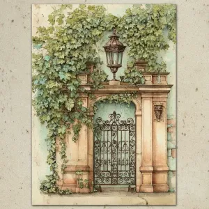 «Print-ready junk journal page, A4 portrait full-bleed, 300 DPI....»