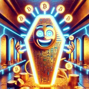 «A glowing, golden sarcophagus covered in ancient Egyptian hierog...»