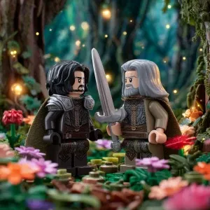 «“Cinematic close-up of soft drifting snowflakes glowing in warm...»