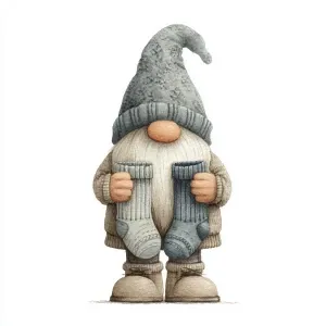 «soft cozy semi-realistic illustration of a cute chubby winter gn...»
