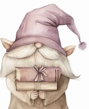 «Vintage watercolor illustration, cozy valentine gnome librarian...»