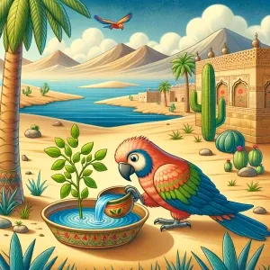 «सीन 2 🪣 तोता पास की नदी से कटोरी में पानी लेकर आता है। तोता उस...»